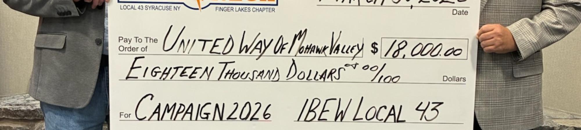 When labor and community come together real impact happens. Thank You for standing with the United Way of the Mohawk Valley and investing in the future of our community.